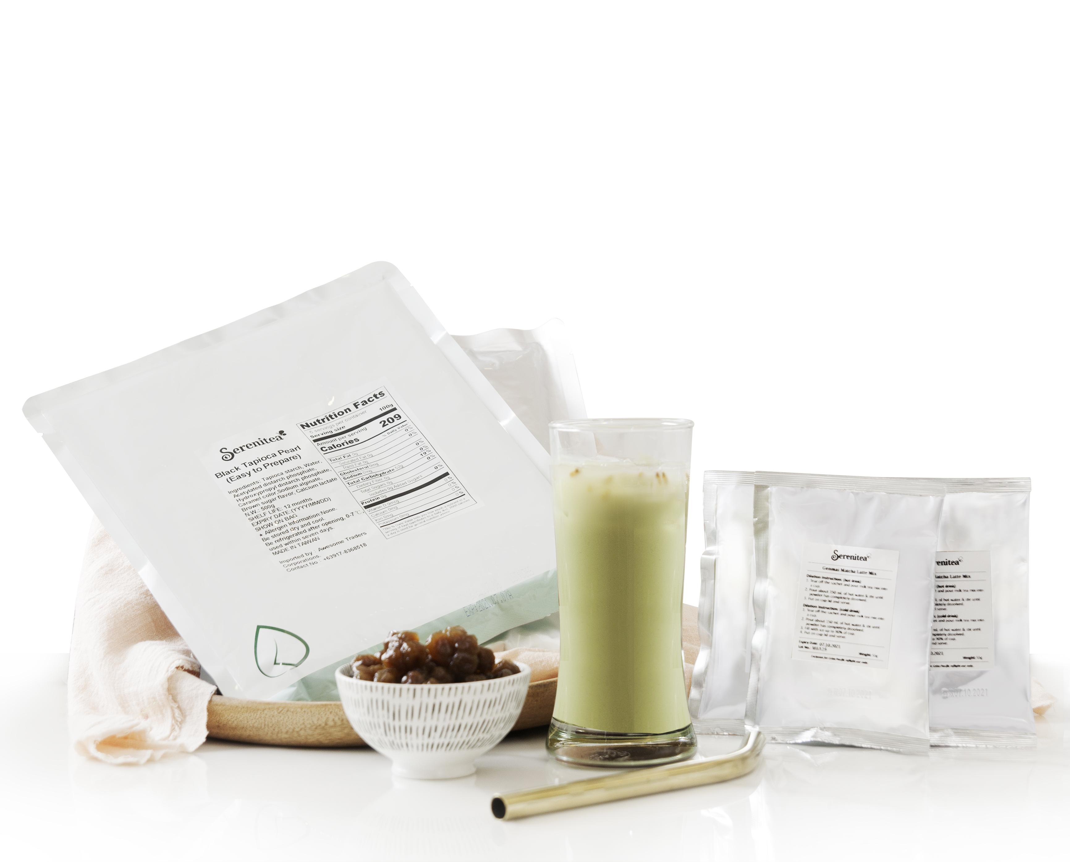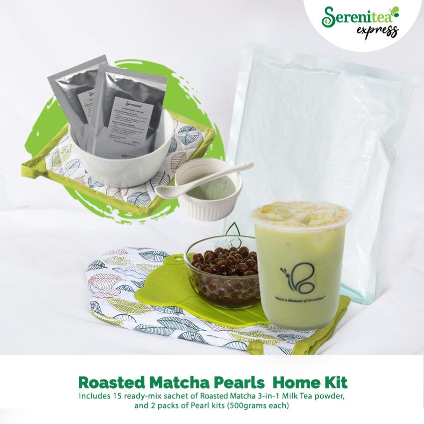 Roasted Matcha Latte Pearl Home Kit P1099) provides fifteen (15) Roasted Matcha Latte Milk Tea sachets with pearl kit that lets you make the famous sinker with easy-to-follow instructions.